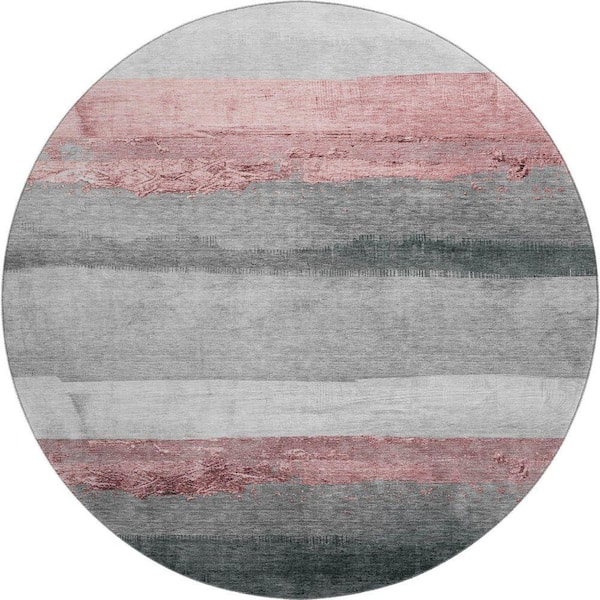 Mayfield Premium Machine Washable Abstract AMF1883 Blush 8 ft. x 8 ft. Round Rug