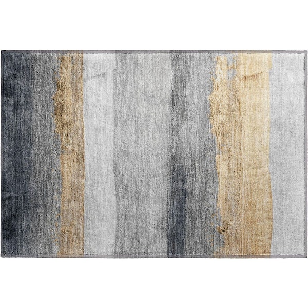 Mayfield Premium Machine Washable Abstract AMF1883 Gold 2 ft. x 3 ft. Area Rug