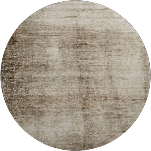 Mayfield Premium Machine Washable Abstract AMF1884 Beige 8 ft. x 8 ft. Round Rug