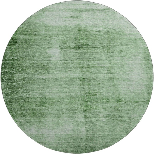 Mayfield Premium Machine Washable Abstract AMF1884 Green 8 ft. x 8 ft. Round Rug