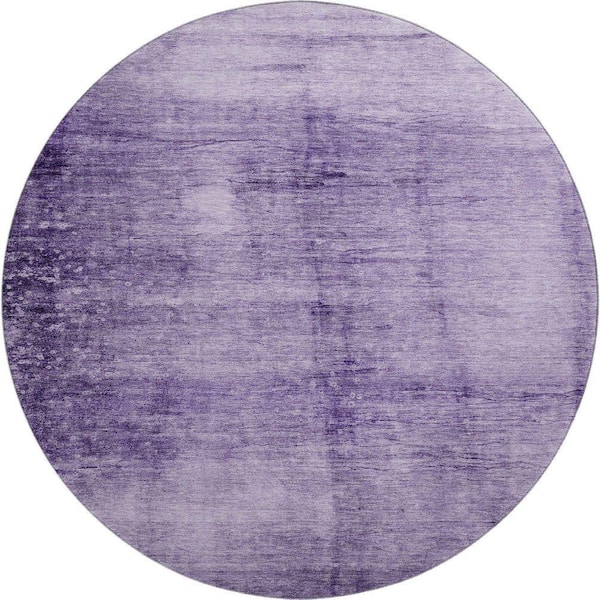 Mayfield Premium Machine Washable Abstract AMF1884 Purple 8 ft. x 8 ft. Round Rug