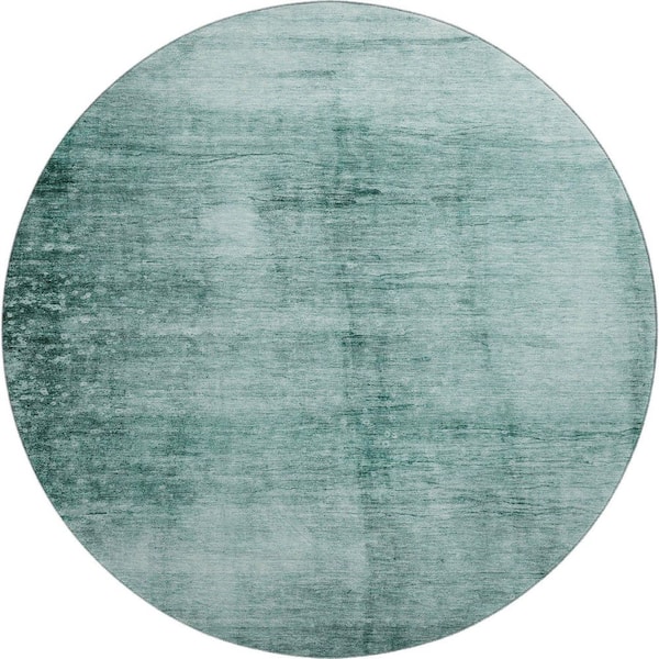 Mayfield Premium Machine Washable Abstract AMF1884 Teal 8 ft. x 8 ft. Round Rug