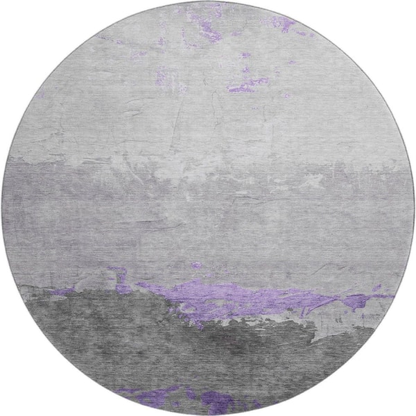 Mayfield Premium Machine Washable Abstract AMF1885 Purple 8 ft. x 8 ft. Round Rug