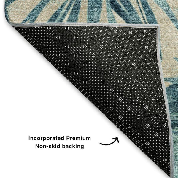 Mayfield Premium Machine Washable Abstract AMF1886 Teal 8 ft. x 8 ft. Round Rug