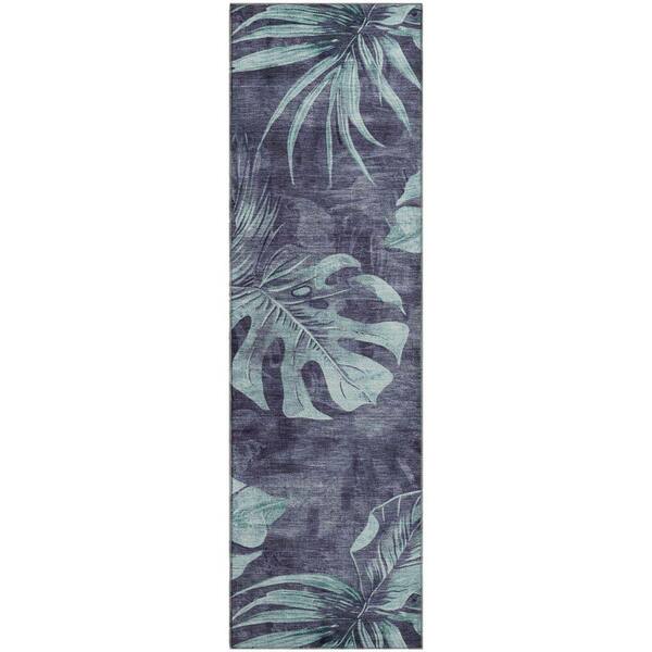 Mayfield Premium Machine Washable Abstract AMF1887 Blue 2 ft. 3 in. x 7 ft. 6 in. Runner Rug