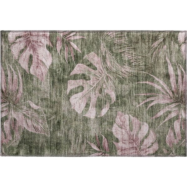 Mayfield Premium Machine Washable Abstract AMF1887 Olive 2 ft. x 3 ft. Area Rug