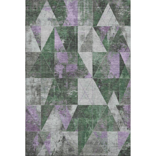 Mayfield Premium Machine Washable Abstract AMF1888 Emerald 5 ft. x 7 ft. 6 in. Area Rug