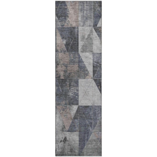 Mayfield Premium Machine Washable Abstract AMF1888 Gray 2 ft. 3 in. x 7 ft. 6 in. Runner Rug