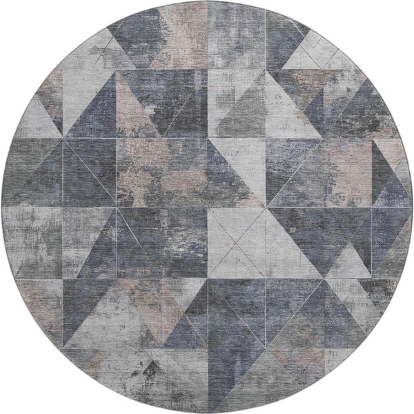 Mayfield Premium Machine Washable Abstract AMF1888 Gray 8 ft. x 8 ft. Round Rug