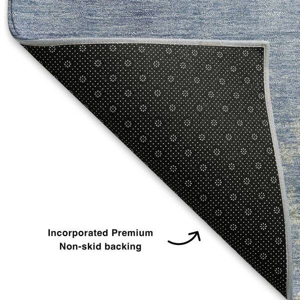 Mayfield Premium Machine Washable Abstract AMF1889 Denim 8 ft. x 8 ft. Round Rug