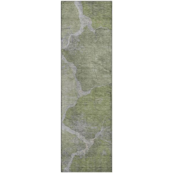 Mayfield Premium Machine Washable Abstract AMF1889 Green 2 ft. 3 in. x 7 ft. 6 in. Runner Rug
