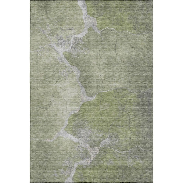 Mayfield Premium Machine Washable Abstract AMF1889 Green 3 ft. x 5 ft. Area Rug