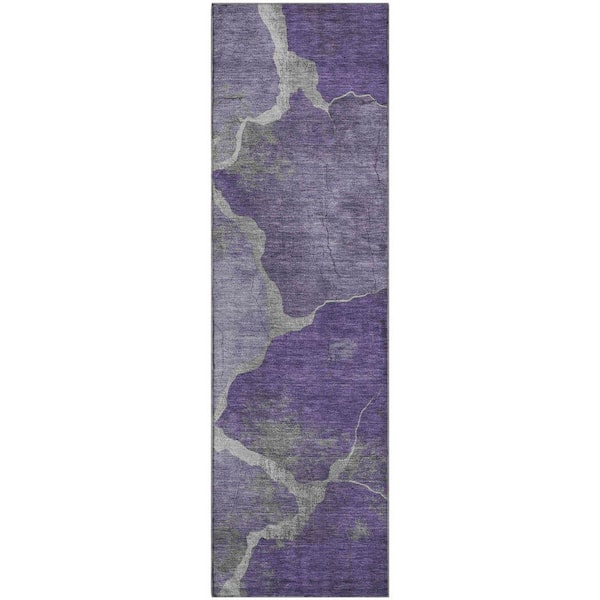 Mayfield Premium Machine Washable Abstract AMF1889 Purple 2 ft. 3 in. x 7 ft. 6 in. Runner Rug