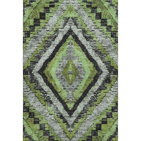 Mayfield Premium Machine Washable Abstract AMF1890 Aloe 10 ft. x 14 ft. Area Rug