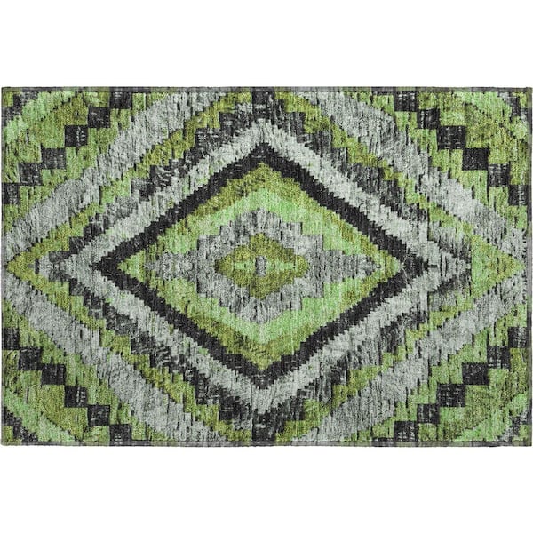 Mayfield Premium Machine Washable Abstract AMF1890 Aloe 2 ft. x 3 ft. Area Rug