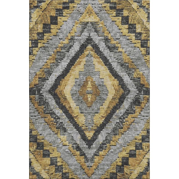 Mayfield Premium Machine Washable Abstract AMF1890 Gold 3 ft. x 5 ft. Area Rug