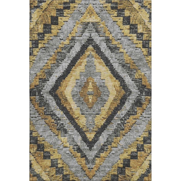 Mayfield Premium Machine Washable Abstract AMF1890 Gold 5 ft. x 7 ft. 6 in. Area Rug