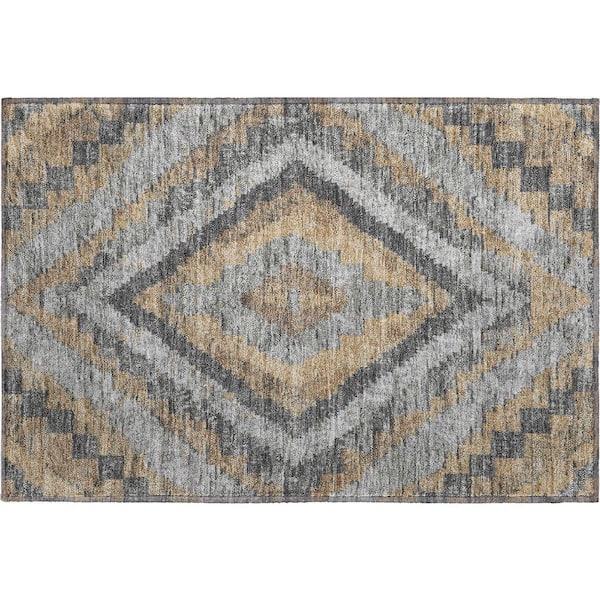 Mayfield Premium Machine Washable Abstract AMF1890 Khaki 2 ft. x 3 ft. Area Rug