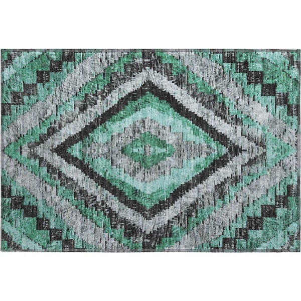 Mayfield Premium Machine Washable Abstract AMF1890 Seafoam 2 ft. x 3 ft. Area Rug
