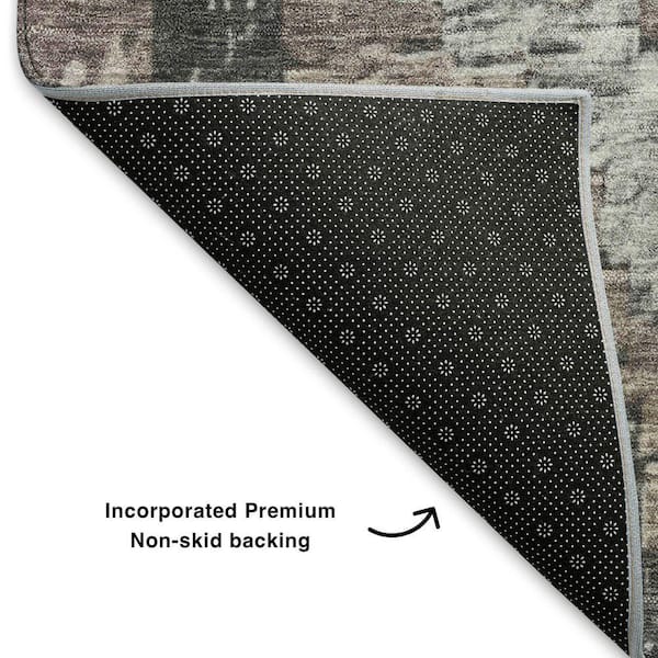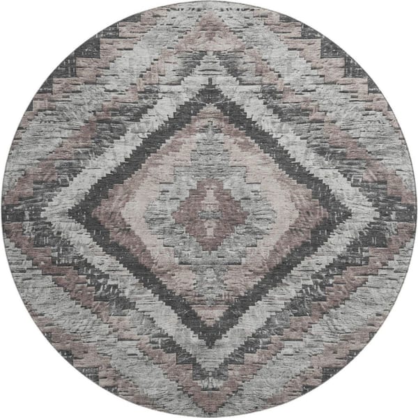 Mayfield Premium Machine Washable Abstract AMF1890 Taupe 8 ft. x 8 ft. Round Rug