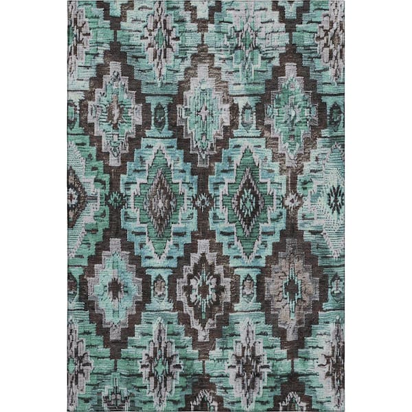 Mayfield Premium Machine Washable Abstract AMF1891 Teal 3 ft. x 4 ft. Area Rug