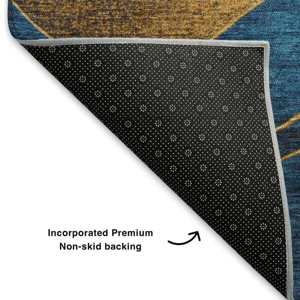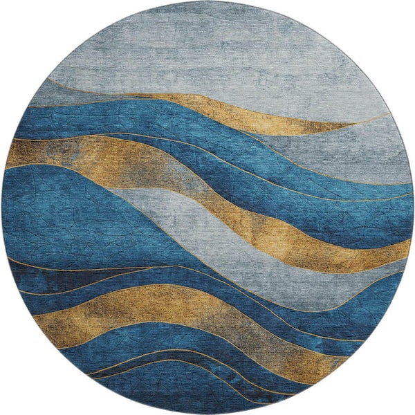 Mayfield Premium Machine Washable Abstract AMF1892 Blue 8 ft. x 8 ft. Round Rug
