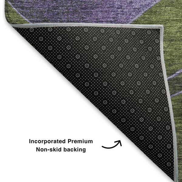 Mayfield Premium Machine Washable Abstract AMF1892 Olive 8 ft. x 8 ft. Round Rug