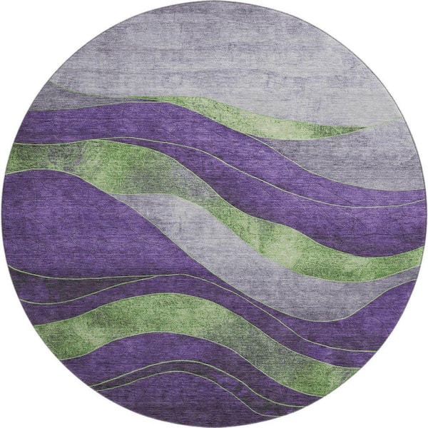 Mayfield Premium Machine Washable Abstract AMF1892 Purple 8 ft. x 8 ft. Round Rug