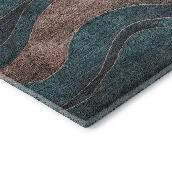 Mayfield Premium Machine Washable Abstract AMF1892 Teal 3 ft. x 5 ft. Area Rug