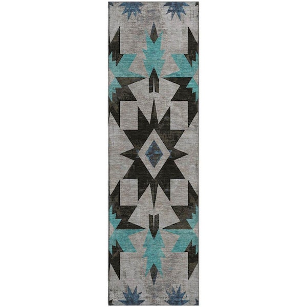 Mayfield Premium Machine Washable Abstract AMF1893 Black 2 ft. 3 in. x 7 ft. 6 in. Runner Rug