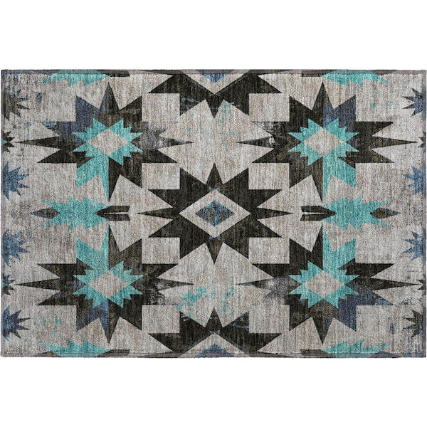 Mayfield Premium Machine Washable Abstract AMF1893 Black 2 ft. x 3 ft. Area Rug
