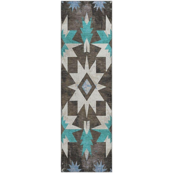 Mayfield Premium Machine Washable Abstract AMF1893 Brown 2 ft. 3 in. x 7 ft. 6 in. Runner Rug
