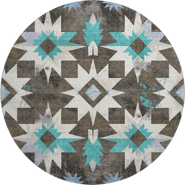 Mayfield Premium Machine Washable Abstract AMF1893 Brown 8 ft. x 8 ft. Round Rug