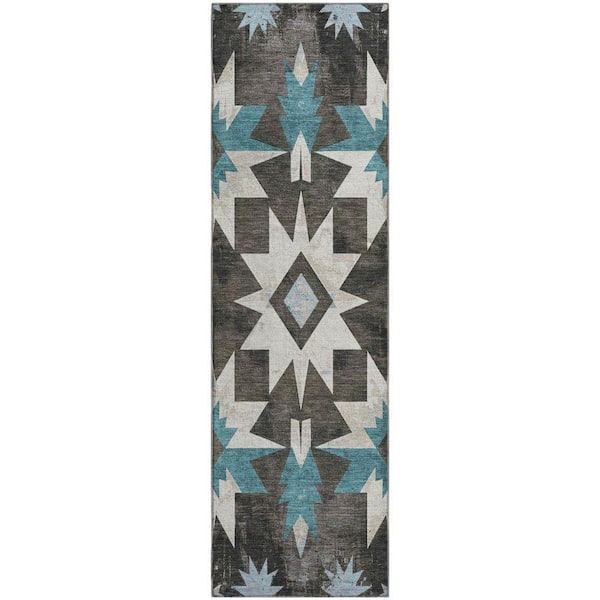 Mayfield Premium Machine Washable Abstract AMF1893 Coffee 2 ft. 3 in. x 7 ft. 6 in. Runner Rug
