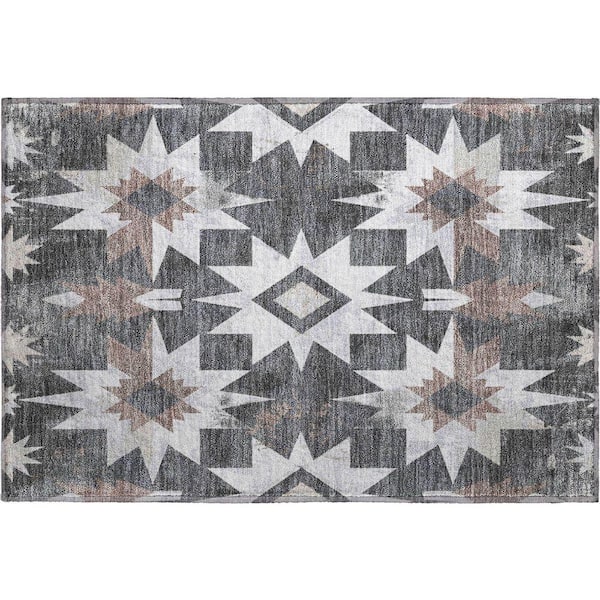 Mayfield Premium Machine Washable Abstract AMF1893 Graphite 2 ft. x 3 ft. Area Rug