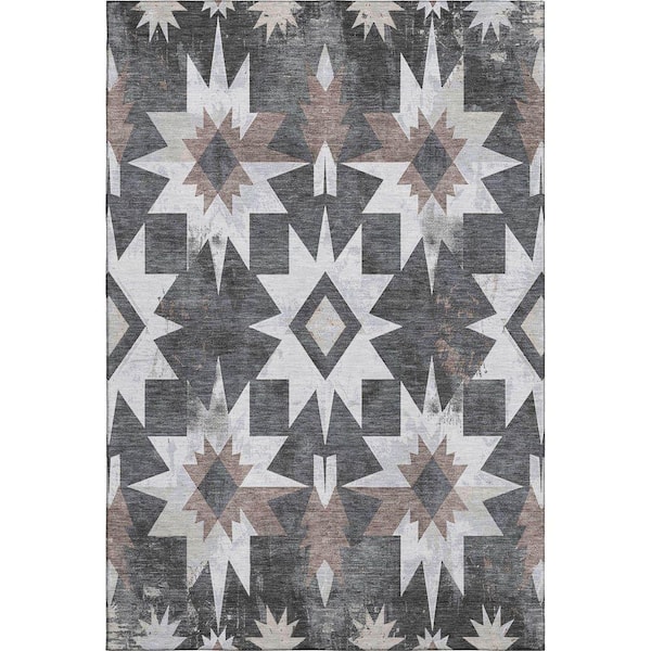 Mayfield Premium Machine Washable Abstract AMF1893 Graphite 3 ft. x 4 ft. Area Rug