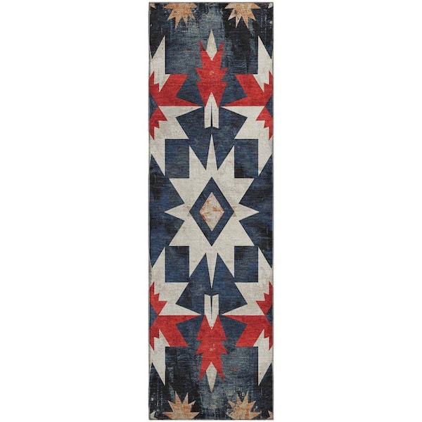 Mayfield Premium Machine Washable Abstract AMF1893 Navy 2 ft. 3 in. x 7 ft. 6 in. Runner Rug