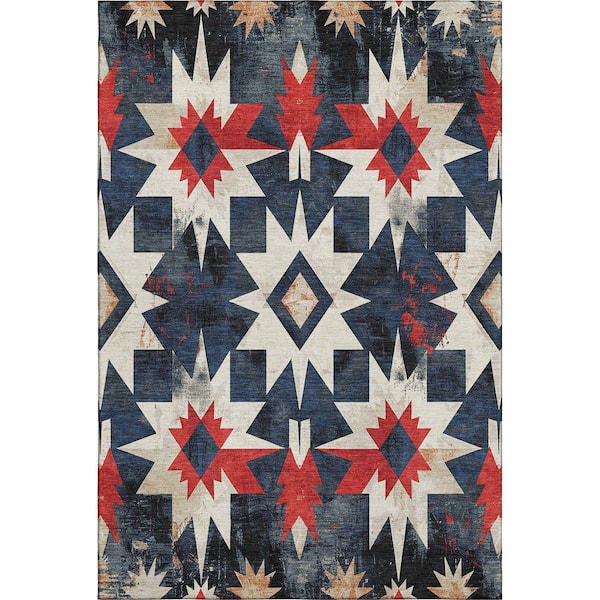 Mayfield Premium Machine Washable Abstract AMF1893 Navy 3 ft. x 5 ft. Area Rug