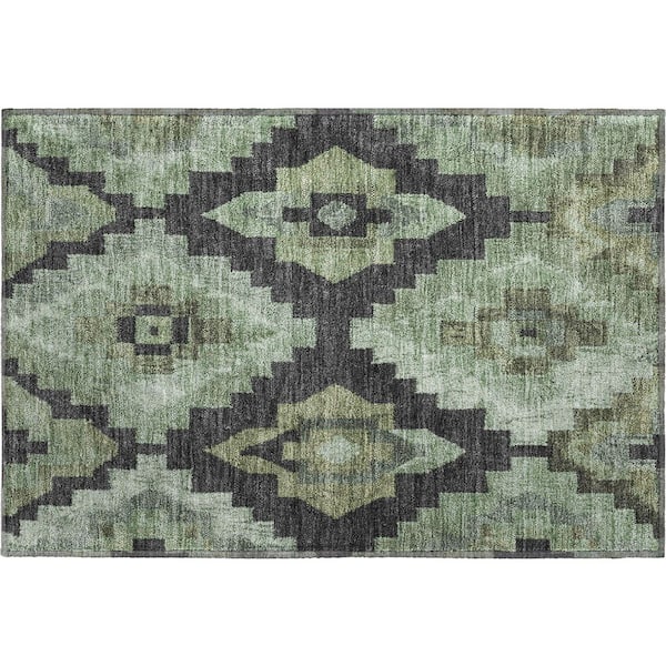 Mayfield Premium Machine Washable Abstract AMF1894 Aloe 2 ft. x 3 ft. Area Rug