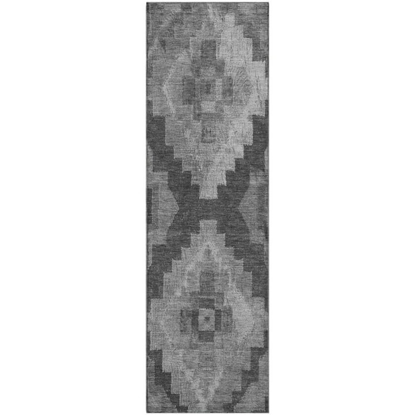 Mayfield Premium Machine Washable Abstract AMF1894 Gray 2 ft. 3 in. x 7 ft. 6 in. Runner Rug