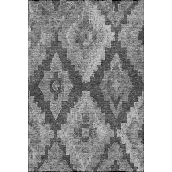 Mayfield Premium Machine Washable Abstract AMF1894 Gray 3 ft. x 4 ft. Area Rug
