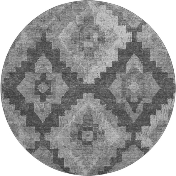 Mayfield Premium Machine Washable Abstract AMF1894 Gray 8 ft. x 8 ft. Round Rug