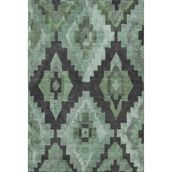 Mayfield Premium Machine Washable Abstract AMF1894 Green 8 ft. x 10 ft. Area Rug
