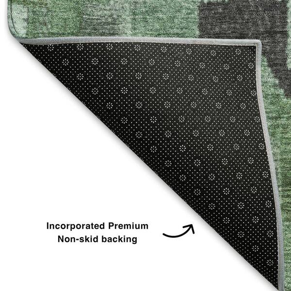 Mayfield Premium Machine Washable Abstract AMF1894 Green 8 ft. x 8 ft. Round Rug