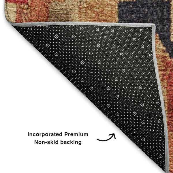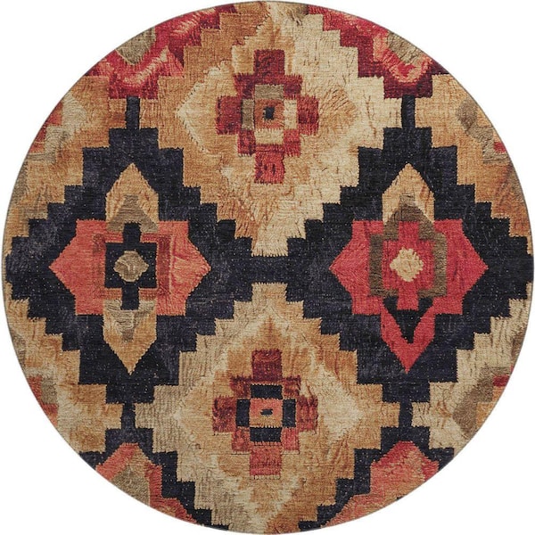Mayfield Premium Machine Washable Abstract AMF1894 Rust 8 ft. x 8 ft. Round Rug