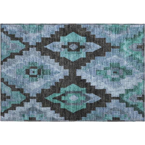 Mayfield Premium Machine Washable Abstract AMF1894 Teal 2 ft. x 3 ft. Area Rug