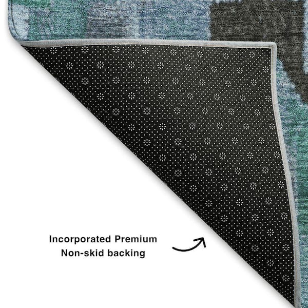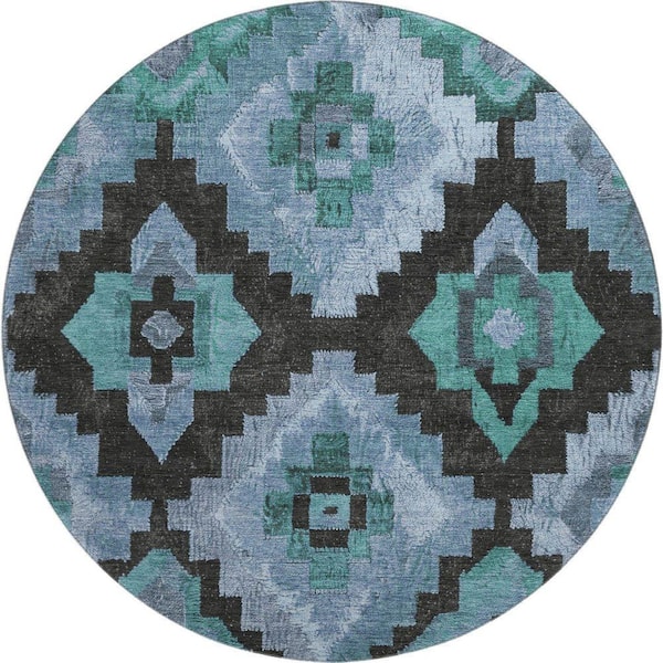 Mayfield Premium Machine Washable Abstract AMF1894 Teal 8 ft. x 8 ft. Round Rug