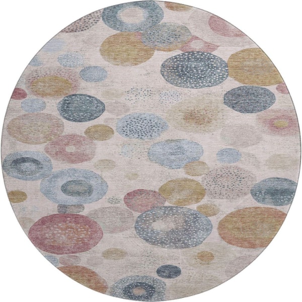 Mayfield Premium Machine Washable Abstract AMF1896 Blush 8 ft. x 8 ft. Round Rug