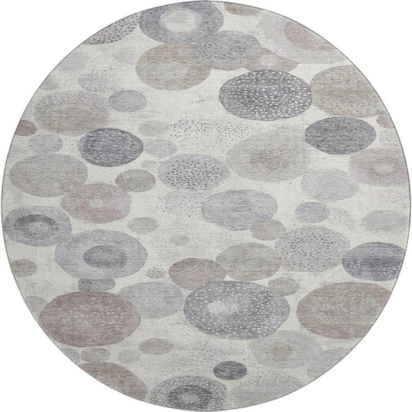 Mayfield Premium Machine Washable Abstract AMF1896 Ivory 8 ft. x 8 ft. Round Rug