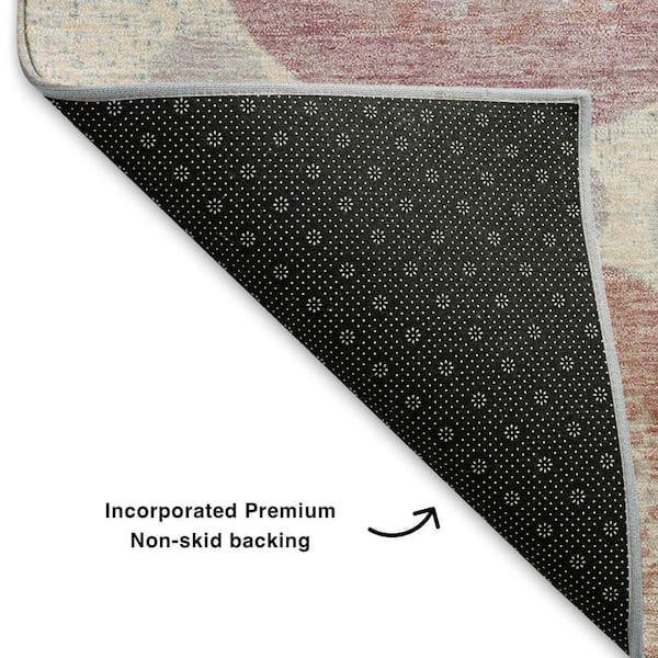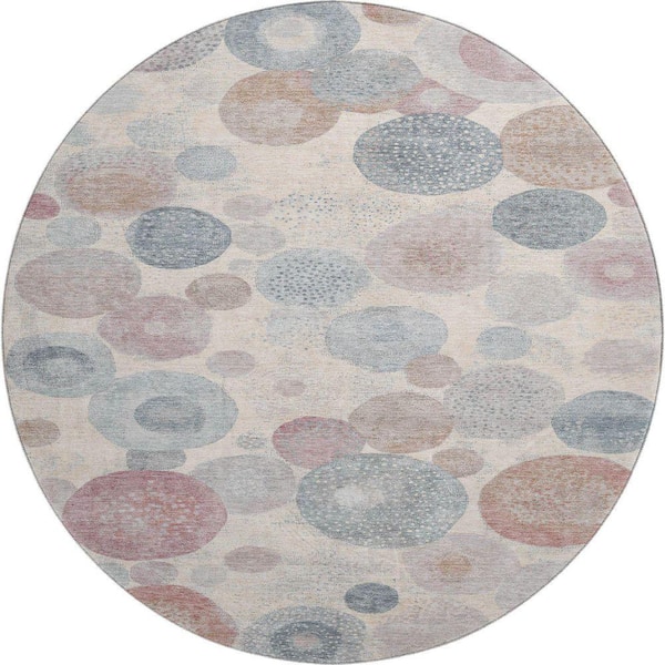 Mayfield Premium Machine Washable Abstract AMF1896 Peach 8 ft. x 8 ft. Round Rug